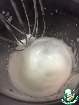 Белок взбиваем с лимонным соком до устойчивых пиков.