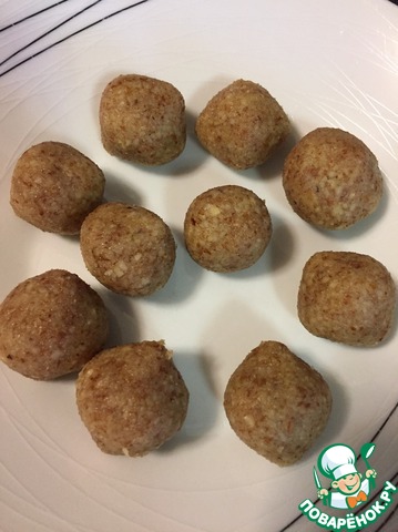 Утром вынимаем марципан из холодильника и даем немного постоять, дойти до комнатной температуры. Затем делим на 10 частей и скатываем шарики.