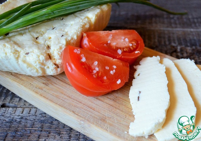 Суть тут в чем: при кипячении молока со сметаной и яйцами после того, как масса «створожилась», где-то за 2 минуты до окончания процесса необходимо добавить «наполнитель», будь это зелень, оливки или что-то другое, тщательно перемешать, выдержать на огне и отцедить…