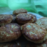 3. Мажем руки маслом растительным и делаем "лепешечки", получается 5 сырничков.