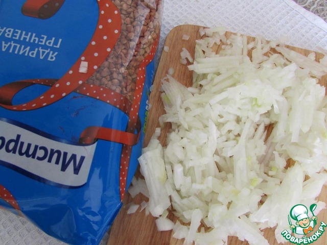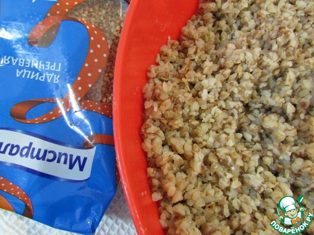 Приготовить начинку. Гречку отварить согласно инструкции на упаковке.