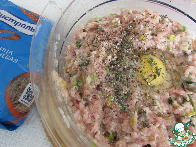 Ингредиенты для «Мясной хлебец с гречкой и шампиньонами»: