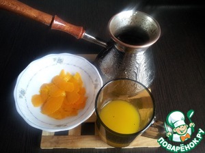 Сварить кофе, остудить. С апельсина снять цедру (кусочками), выжать сок.