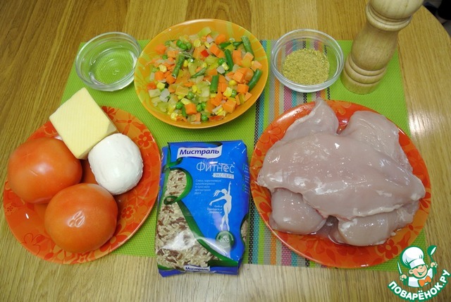 Ингредиенты для «Курица «Капрезе» с рисом и овощами»: