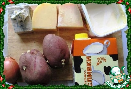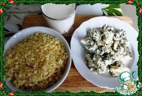 - Сыр мягкий (100 г - камамбер, бри или качественный плавленый сыр; 100 г - сыр с зеленой плесенью: дор-блю, рокфор) — 200 г