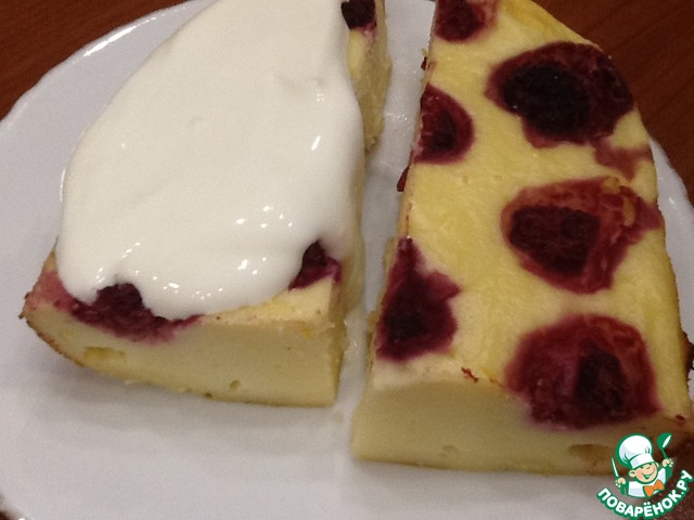 Творожник получается плотным, не садится совершенно. Мне кажется, что малина здесь опциональна, можно и без нее, можно с другой ягодой, а можно и орешками присыпать. В общем на ваш вкус! Угощайтесь! На здоровье!