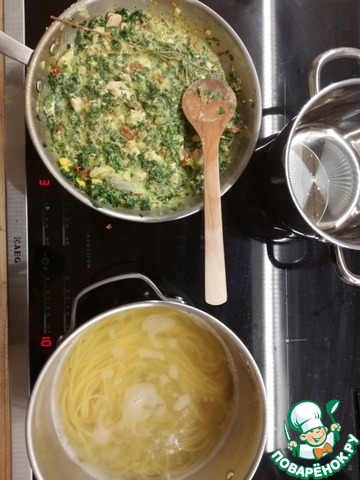 Рецепт «Спагетти со шпинатом, курицей и розмарином»: