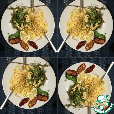 Спагетти со шпинатом, курицей и розмарином