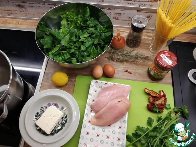 Ингредиенты для «Спагетти со шпинатом, курицей и розмарином»: