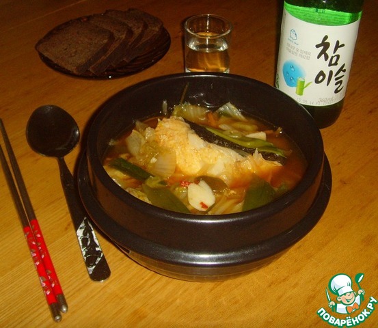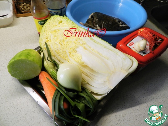 Для любителей корейской кухни. В корейской кулинарии есть разновидность блюд, которые называются тиге. Что-то вроде густого супа или похлебки. Обычно это мясо или рыба с овощами. Тиге может быть основным блюдом на столе. Его можно готовить из любой рыбы-кусочков или филе. Но мне больше всего нравится из головы палтуса. Палтус рыба деликатесная, жирненькая. А в голове палтуса много косточек и хрящиков, так что навар получается отличный! Супчик этот я варю давно. Он легкий, но сытный. Особенно хорош после праздников. В этот раз добавила в рецептуру пекинскую капусту.