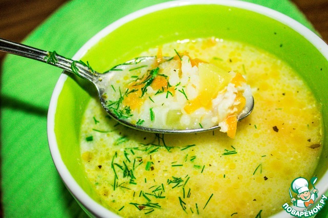 [+5]Цуккини я натерла в суп на крупной терке (маскировка). Готовила в МВ-скороварке на режиме рис. Сделала большую ошибку, добавив пл.сыр до включения МВ. Нужно добавлять его в конце, после того, как суп уже готов.