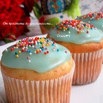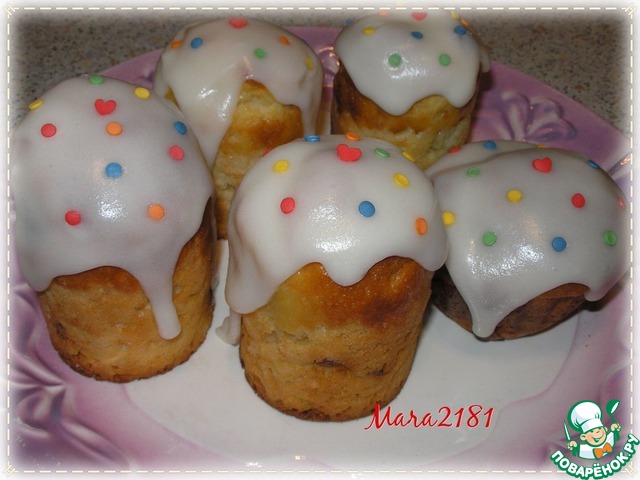 Пропорции нарушила( наверное барахлят весы),так как получилась очень густая глазурь, ложку провернуть не возможно . Добавляла молоко по каплям.Наносила на остывшие куличи.