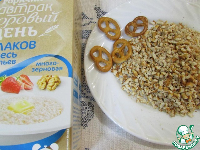 Приготовить основу. Бретцели смолоть в крошку.