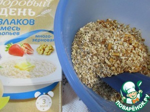 • В миске соединить смесь злаков ТМ Мистраль (можно тоже смолоть) и крошку из печенья.