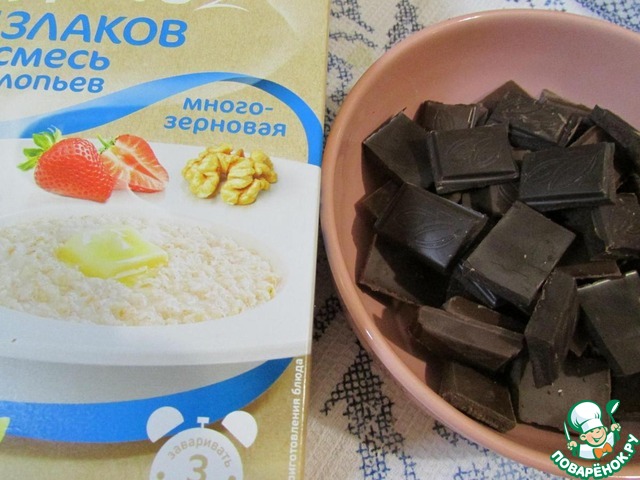 Шоколад добавить к сухой смеси и хорошо перемешать.