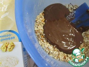 • Шоколад добавить к сухой смеси и хорошо перемешать.