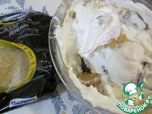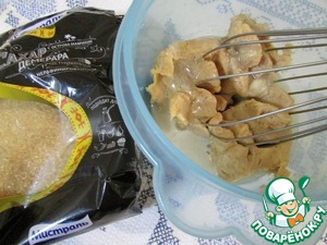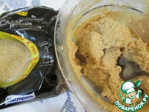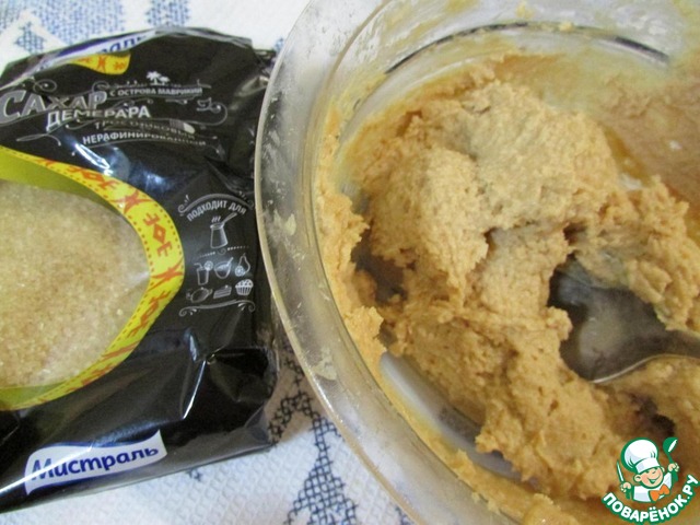 • Приготовить начинку. В миске соединить сахар Демерара ТМ Мистраль, арахисовую пасту, рикотту и сливочный сыр. Размешать вилкой до однородности.