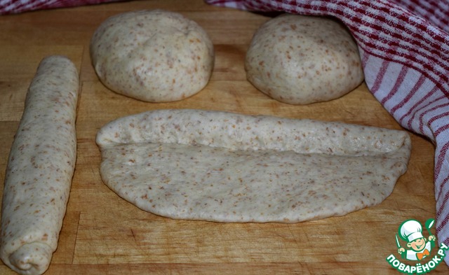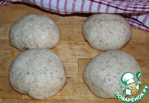 Выложить тесто на рабочую поверхность, смазанную растительным маслом, обмять и разделить на 4 равные части.