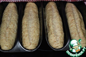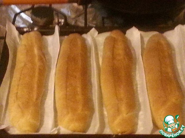 Смазать бумагу растительным маслом и выложить багеты между перегородками.