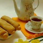 Каждую раскатать в круг толщиной 0,5-0,7 мм. Свернуть рулетом, при этом каждый виток тщательно придавливая.