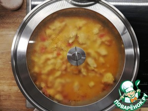 Накройте крышкой и потушите до легкого загустения.