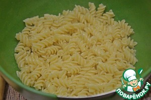 Отварить макароны согласно инструкции на упаковке, уменьшив время на 1-2 минуты, чтобы макароны были аль дэнте. Горячими переложить в миску и перемешать с 1 ст. л. заправки.