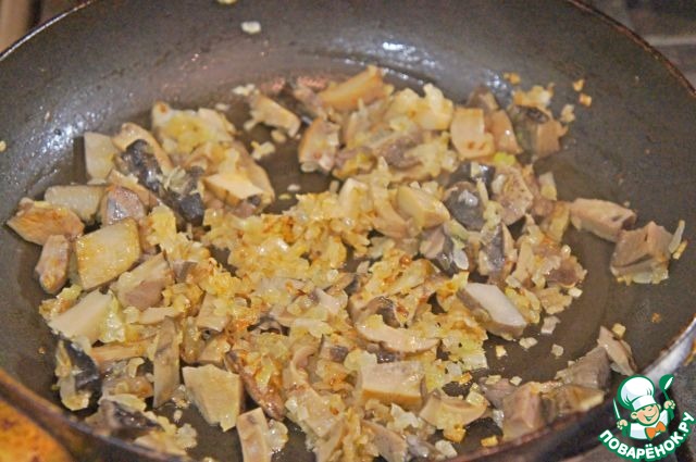 • Добавить грибы и все вместе еще немного пожарить.
