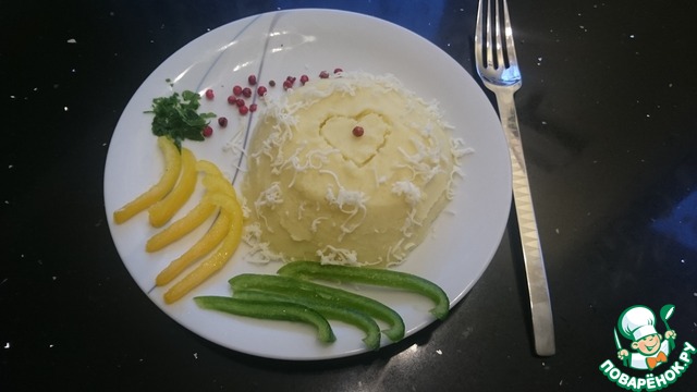 Конечно, это не революционное блюдо - но ведь нам часто приходится готовить картошечку на праздник, и это блюдо будет прекрасная замена обычному пюре. А деткам очень понравится порционная подача - я взяла кулинарное кольцо в форме цветочка, жаль форму пюре не очень хорошо видно на снимке, но для картошки было необычно и интересно!