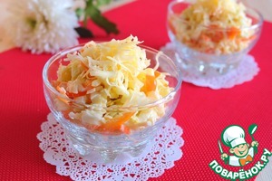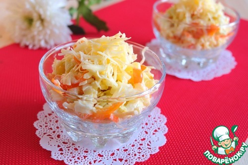 Салат выложить в порционный салатник, верх посыпать сыром.