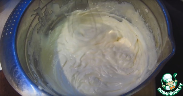 Делаем крем: взбиваем сметану блендером с насадкой венчик около 6-8 минут.