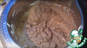 Какао, мягкое сливочное масло. Все тщательно перемешиваем. Должна получится масса как очень густая сметана.