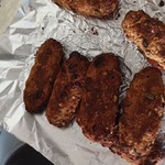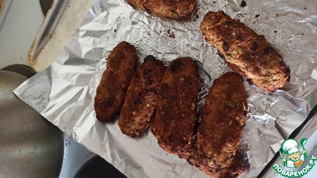 [+5]Делала на 5 порций. То есть брала по 100 г: вместо миндаля - тыквенные семечки, вместо вишни - изюм, вместо отрубей - зерновые хлопья, вместо сухого молока - соевый протеин. Фиников у меня было мало, поэтому размяла туда небольшой банан. Плюс 2 яйца и 5 ст. ложек воды. Тесто получилось довольно крутым, из него испеклось 12 батончиков по 50-60 г. Да-да, из-за яиц запекала в духовке на 180° по 20 мин. с каждой стороны. Не очень красивые, но очень вкусные!