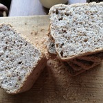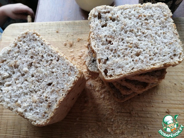 Хлеб получается с очень интересной структурой, не влажный, не клеклый, но достаточно плотный. С легким ароматом гречки и ореховым послевкусием. Чем то напоминает хлеб " 7 злаков". Прекрасно подойдет как и для основных блюд, так и для бутербродов к чаю или кофе. Буханка получается примерно 300 гр.