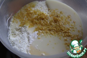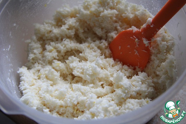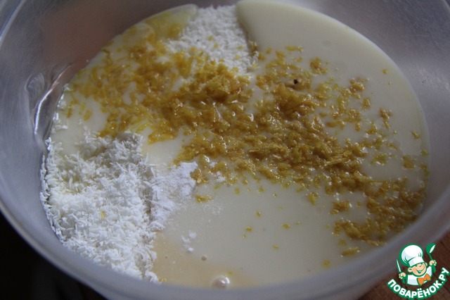 Смешать кокосовую стружку, сгущенное молоко, лимонную цедру и сок лимона.