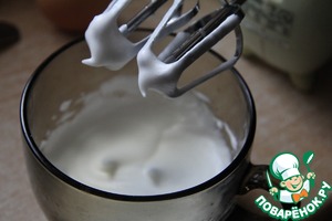 В другой посуде взбить белок с щепоткой соли до твердых пиков.