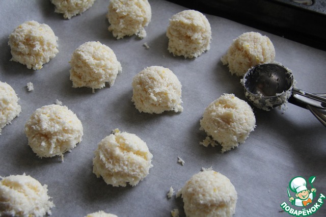 С помощью ложки (я приспособила ложку для мороженого) выкладывать "башенки" или "горки" на лист для выпечки. -