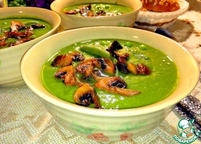Рецепт «Зелёный суп-пюре с шампиньонами»: