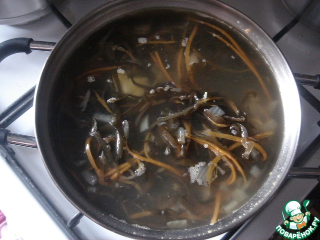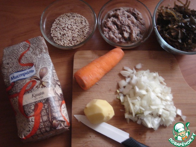 Суп с морской капустой, сайрой в консервах и киноа. Замечательный супчик)