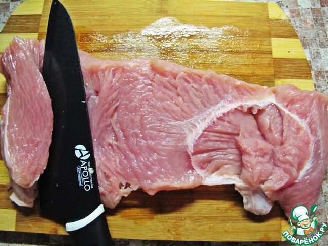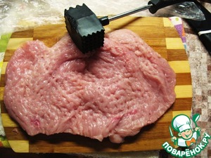 Грудку индейки надрезать и раскрыть как "Книжку", распластать.