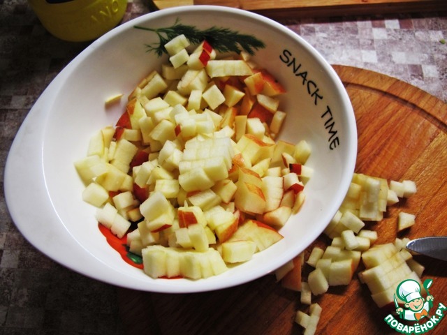 Яблоко нарезаем мелким кубиком.