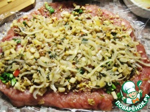 Начинку выложить на мясо.