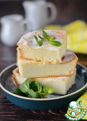 Выпекаем при температуре 170 градусов 50 минут. Запеканка поднимается вдвое так что форму нужно выбрать поглубже или повыше. Подавать запеканку охлажденной.