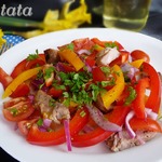 [+5]Я его приготовила,перец красный закончился,поэтому использовала зелёный,жолтый,оранжевый. Попробовала,пришла старшая дочка на кухню,увидела салат,сказала :"аппетитно выглядит",попробовала,вместе мы решили,что можно уксуса и побольше,добавили,и она унесла его в свою комнату. Салат больше никто не видел...
