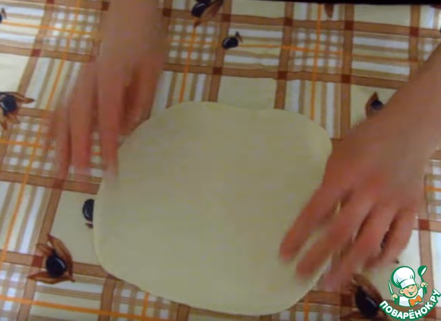 Накрываем второй раскатанной частью, она должна быть шире первой.