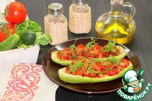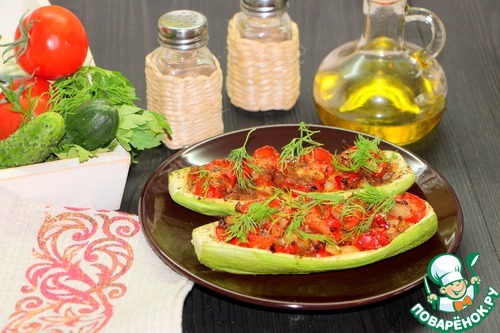 Овощи люблю больше, чем фрукты. И кабачки в моих овощных предпочтених занимают почетное третье место, после баклажанов и томатов. Люблю их во всех блюдах, и в сыром виде в салатах, и в выпечке, и фаршированными мясом. И этот рецепт не исключение, сочно, ярко, диетично, просто и постно. И очень вкусно! Отведать не хотите ли?