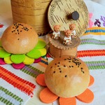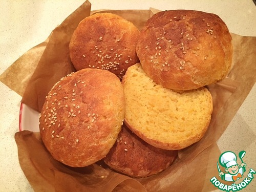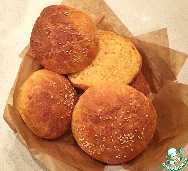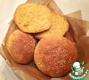 Удивительно, со сладким картофелем и кунжутным маслом булочки получаются очень нежными. С легкой ореховой ноткой. Достаточно сладкими, хоть мы и не добавили ни грамма сахара. Очень вкусно разрезать такую вот булочку вдоль и положить любимый сыр, или колбаску, намазать маслом и икрой или сделать гамбургер. Как я, для своего сына.
