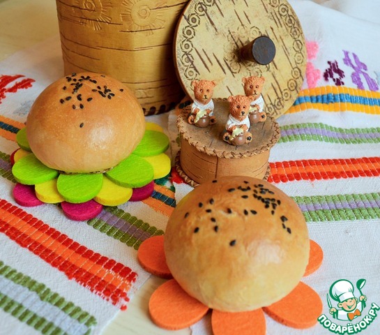 У меня булочки получились большие. Выпекались при температуре 200 градусов 20-23 минуты. Вы ориентируйтесь на свою духовку, конечно же.