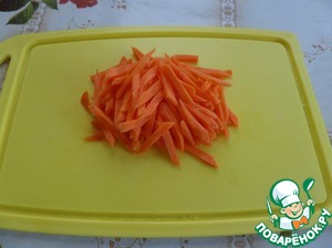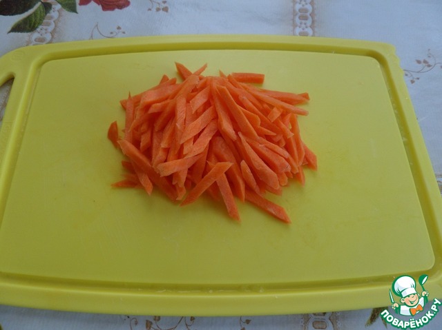 Нарезаем морковь.