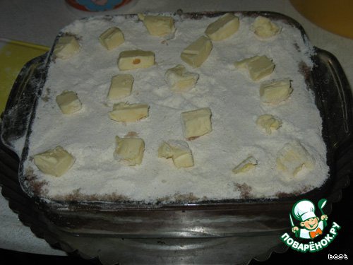 Сверху разложите кусочки масла (оставшиеся 100 г).