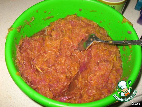 Я ещё добавила небольшой кусочек тыквы. Можно сделать и напополам тыква-яблоки, но тогда сока побольше, так как начинка не должна быть сухой. -